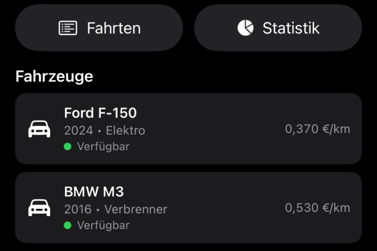 Teile Fahrzeuge mit Familie, Freunden oder Kollegen und verwalte gemeinsam die Nutzung. Die App ordnet Fahrten und Kosten transparent zu, damit jeder fair seinen Anteil bezahlt. Alle Kosten zu Autos und Mitglieder sind individuell einstellbar.