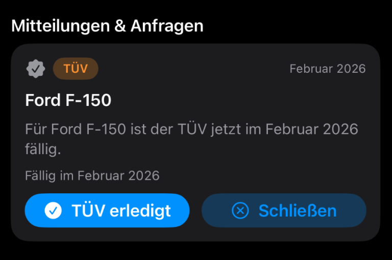 CarCrew erinnert dich rechtzeitig an wichtige Termine wie Wartungen, TÜV und informiert dich per Statusmeldung, wenn etwas an deinem Fahrzeug ansteht, damit du immer sicher unterwegs bist.